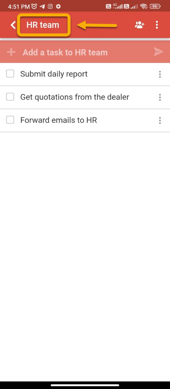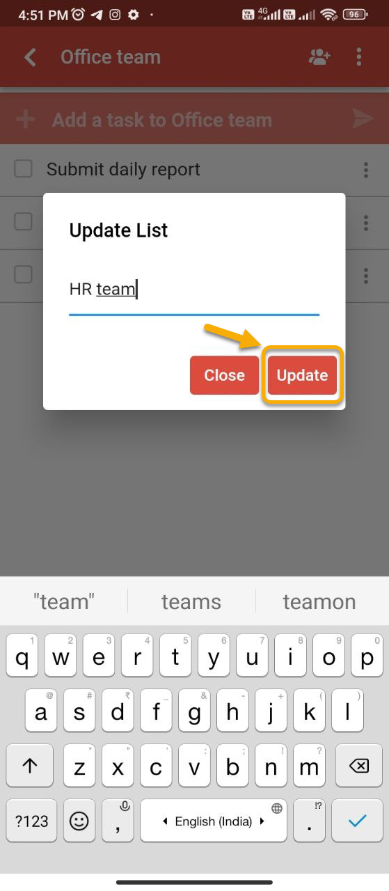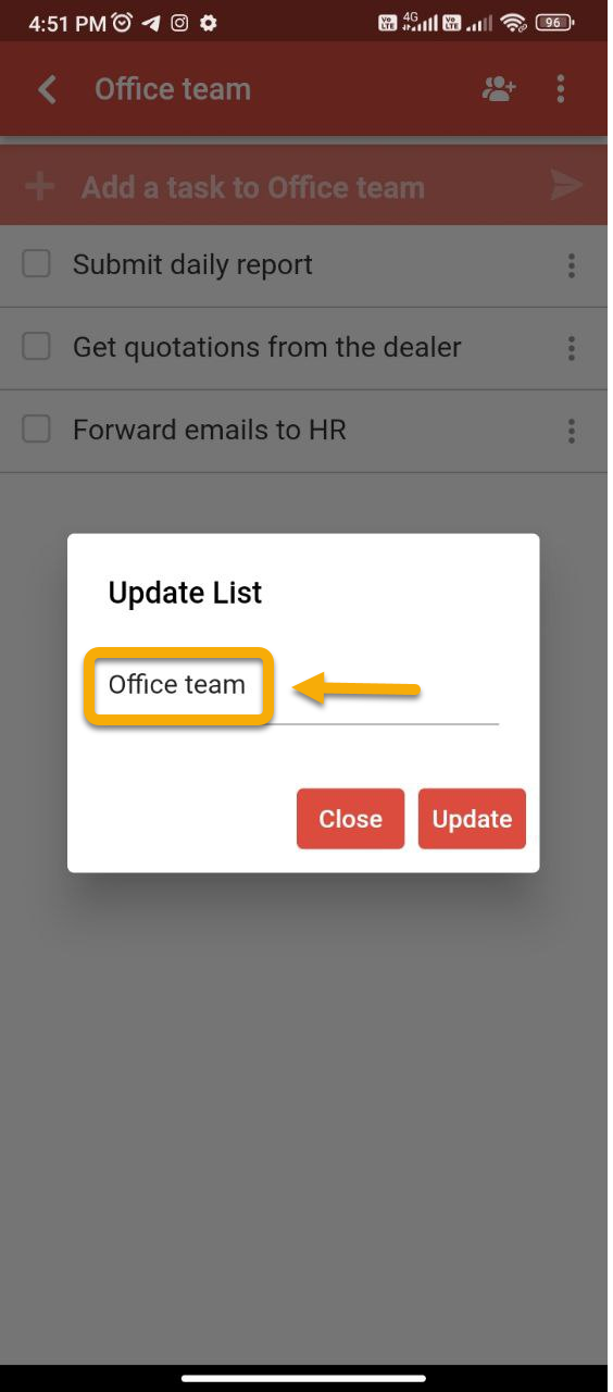 4. Edit the list name as per your choice. For example, We are changing the word "Office team" to "HR Team." For the same, click on the highlighted area to change the name.